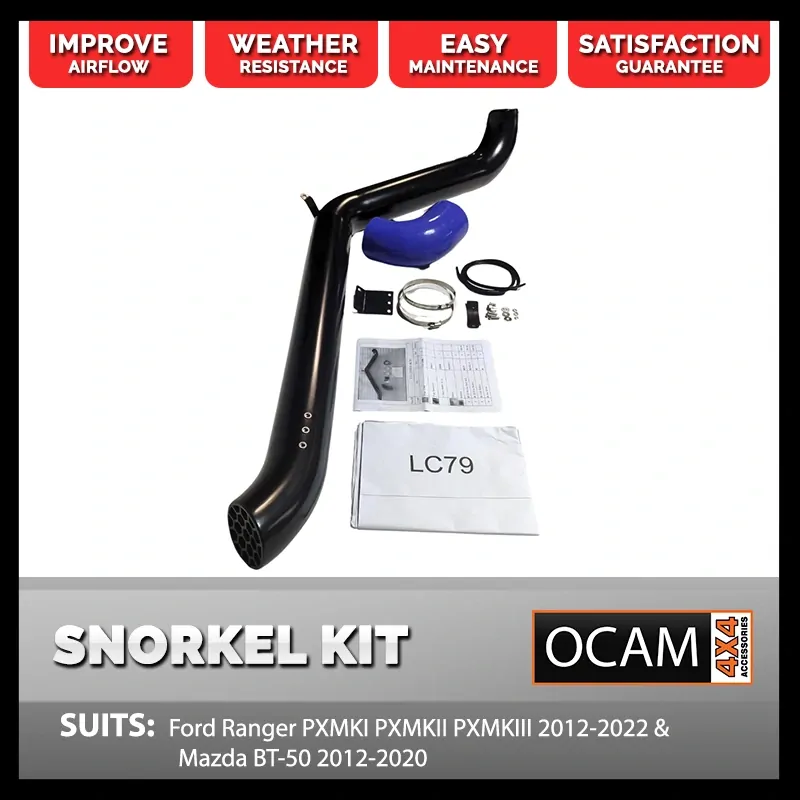 Snorkel kit comes complete with nylock anti-vibration nuts, bolts, brackets and fitting template (to be used as guide only) for easy installation. We recommend fitting by a professional.