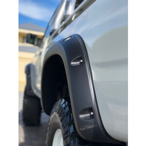 These flares add approx 70mm of wheel coverage to your Toyota Hilux guard to allow for fitting of larger tyres with bigger offset rims to give your truck a more aggressive stance.
