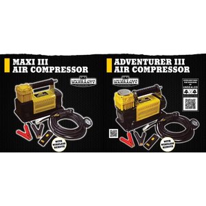 The 110PSI/ 758kPa output will inflate an average 4x4 tyre (205/60R16) in around 3.2 minutes. The MAXI 3 has been built on the same platform as the highly successful MAXI II air compressor.