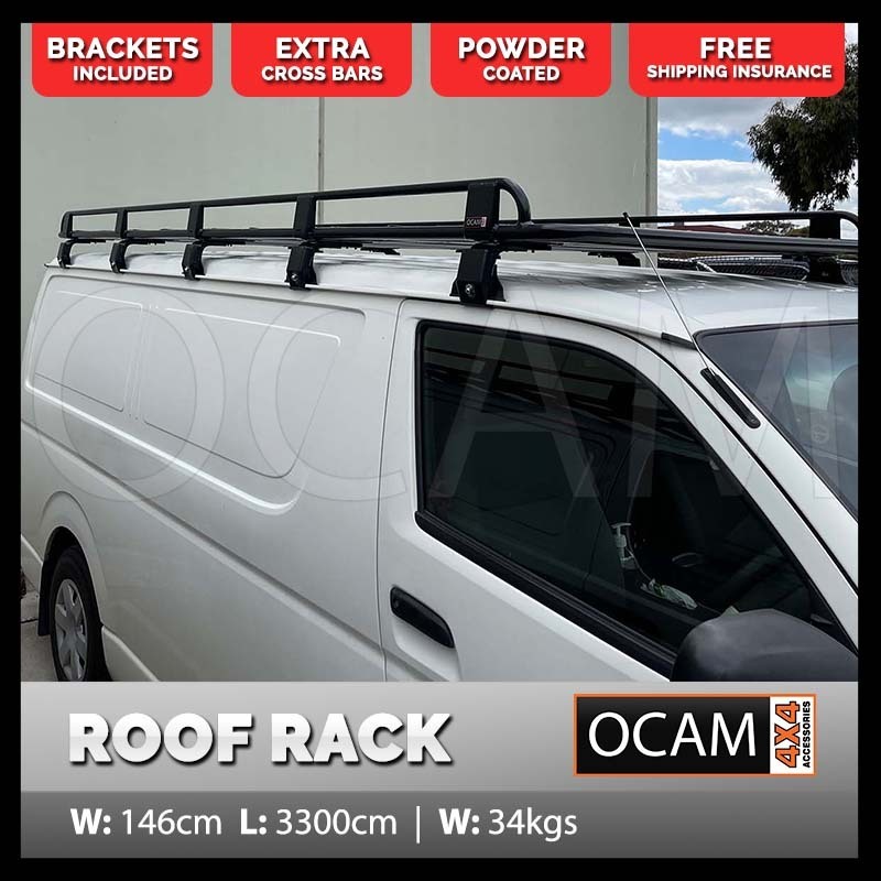 OCAM Aluminium Tradesman Roof Rack For Toyota Hiace 1988-18 Alloy 3300x1464mm, 20cm Brackets