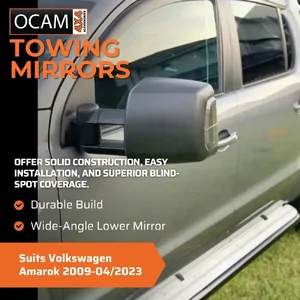 OCAM TM3 Towing Mirrors for Volkswagen Amarok 2009-04/2023 Black Electric